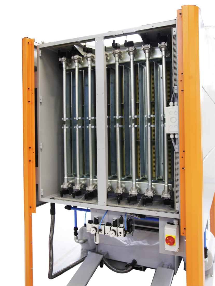 Zařízení využívá k filtraci deskové filtry, které se vyznačují zvlášť dlouhou životností a automatickým odčišťováním pomocí stlačeného vzduchu (čistící tlakové rázy). Vynášení prachu se provádí pomocí sběrné prachové nádoby.